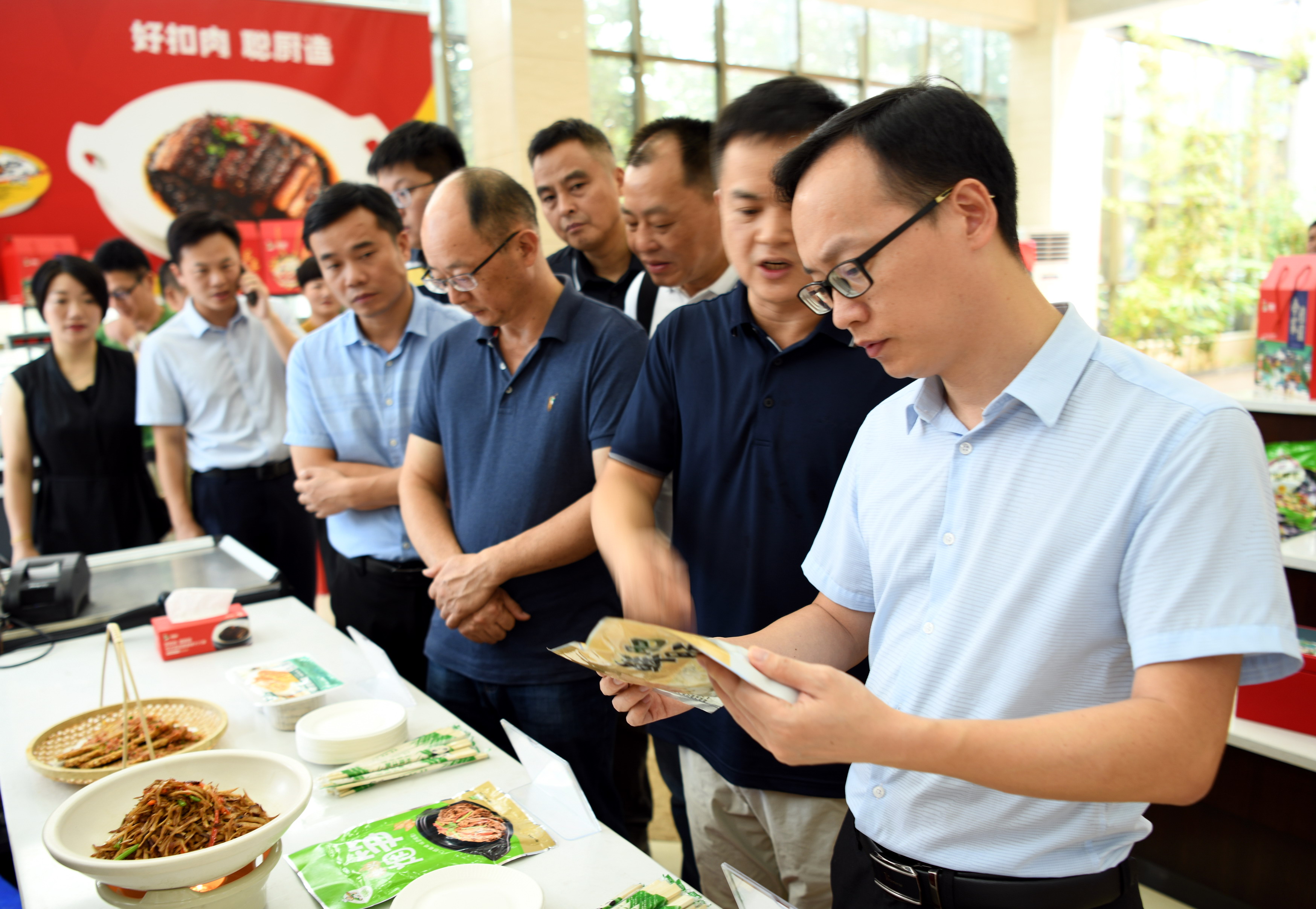 作為湘贛邊農業產業化龍頭企業,聰廚一直注重企業的高質量發展,在簽約儀式正式開始之前,唐步聰董事長帶領江西萬載客人參觀了聰廚生產車間。